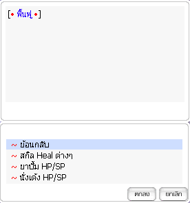 หน้าต่างเมนูหลังกดใช้ไอเท็ม